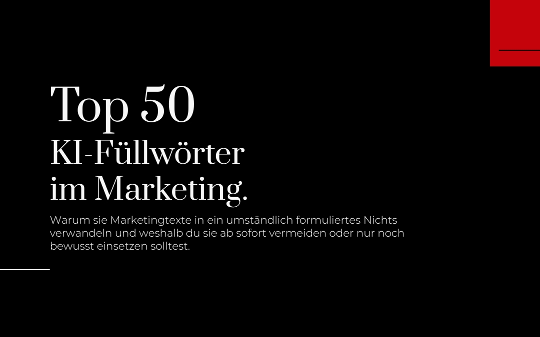Noch problematischer wird es, wenn Marketer selbst diese Begriffe ungefiltert übernehmen. Nicht aus Überzeugung und nicht immer aus fehlender Kompetenz, sondern aus Tempo. Weil es schnell gehen muss. Weil Deadlines drücken. Weil KI schon etwas brauchbar Klingendes geliefert hat. Weil man sich den letzten sprachlichen Feinschliff sparen möchte.